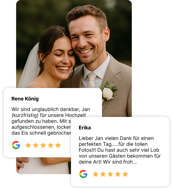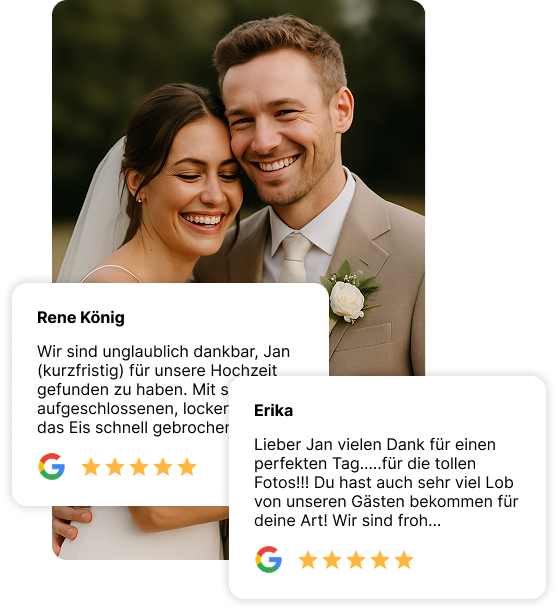 Wir können Jan aus vollem Herzen weiterempfehlen und wünschen ihm für die Zukunft viele weitere glückliche Paare – und ein immer gut gefülltes Auftragsbuch!