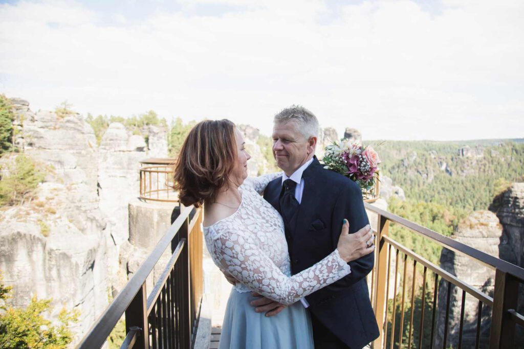 Er war sowohl mittags zur standesamtlichen Trauung an der Malter unter einer wunderschönen Kastanie als auch abends auf der Bastei dabei – und hat in jeder Situation das richtige Gespür für Moment, Licht und Stimmung bewiesen.