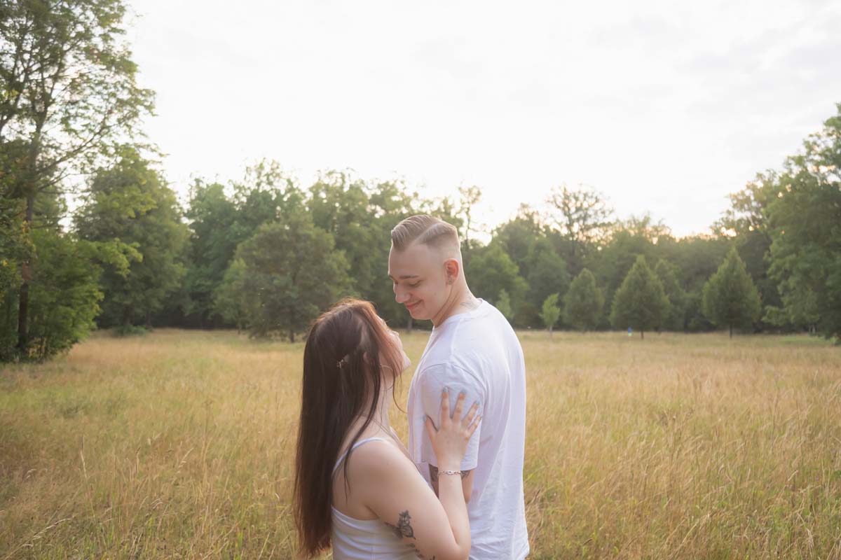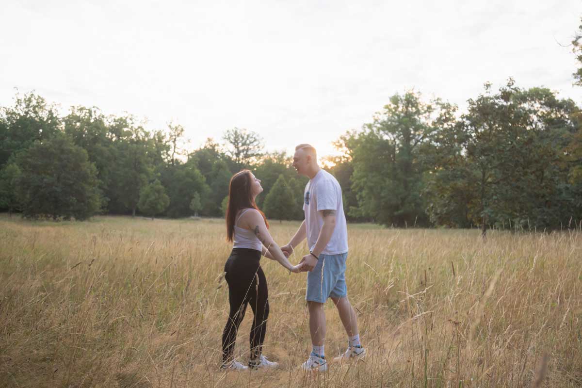 Für dieses Shooting traf ich mich mit dem Paar kurz nach Sonnenaufgang, um das weiche Morgenlicht zu nutzen. Warum? Weil es keine harten Schatten wirft und die Gesichter sanft ausleuchtet. So entstehen strahlende, emotionale Bilder, die eure Verbundenheit perfekt einfangen.