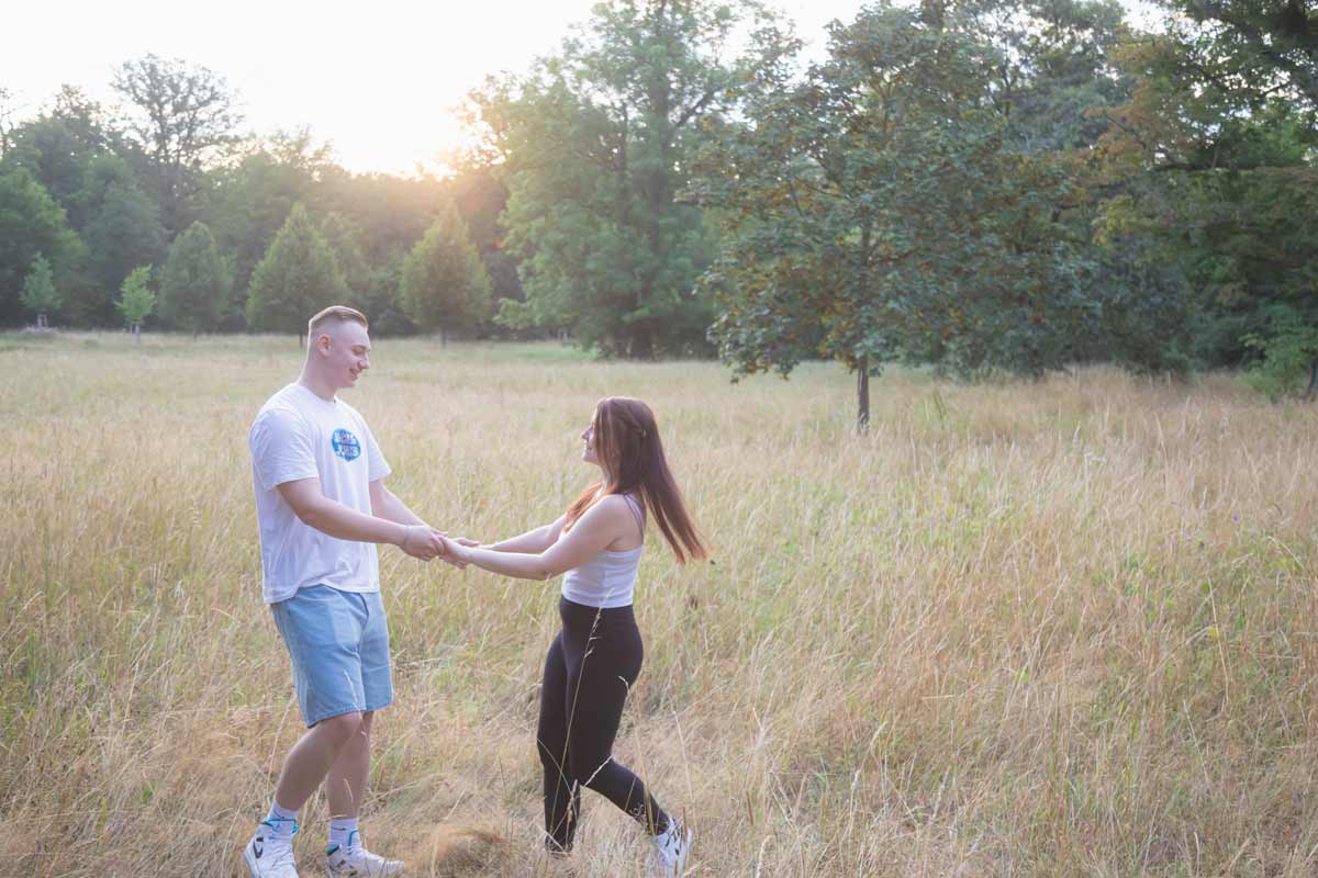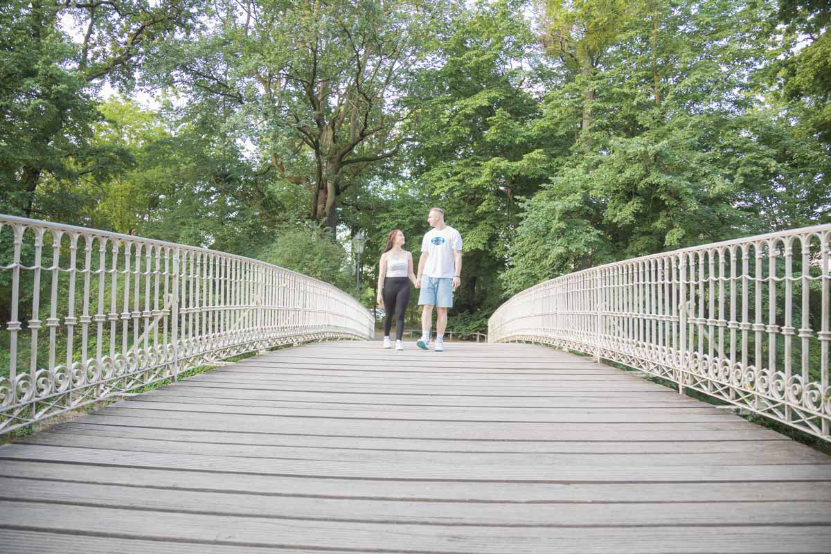 Ob ihr euch unter einem Baum kuschelt oder barfuß durchs Gras lauft – der Park bietet unendlich viele Möglichkeiten für persönliche Fotos.
