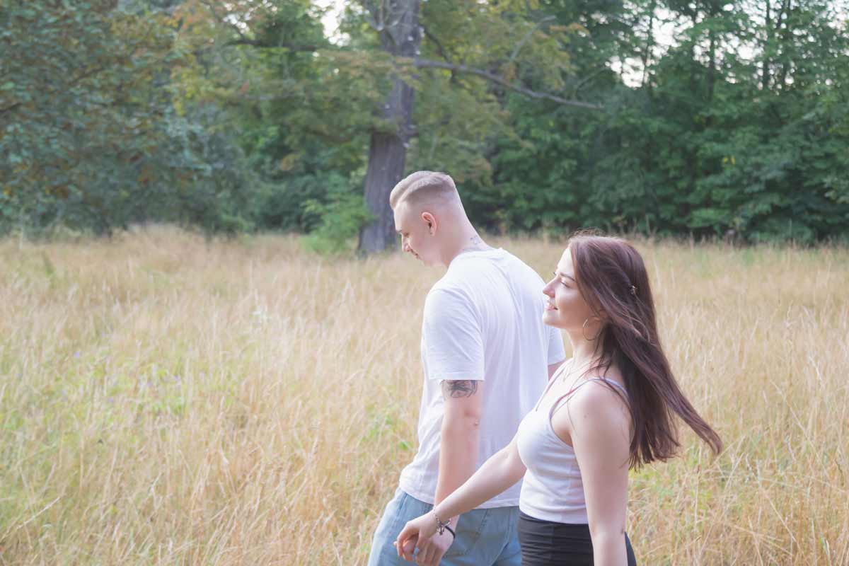 Die schönsten Bilder entstehen dann, wenn ihr ganz bei euch seid – beim Lachen, Umarmen oder einfach beim gemeinsamen Gehen Hand in Hand. Ich arbeite bewusst ohne starre Posen und setze stattdessen auf natürliche, ungezwungene Momente. Wenn ihr euch unsicher fühlt, gebe ich euch sanfte Impulse, die euch in Bewegung bringen. So entstehen echte Emotionen, Leichtigkeit und vor allem viel Freude während des Shootings.